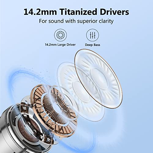 🎵Calidad de sonido cristalina: Con los controladores de diafragma titanizado de 13 mm, los auriculares inalambricos J01 pueden ofrecer un estéreo más claro, un campo de sonido más amplio, haciendo que te sientas tan inmerso como en el sitio.