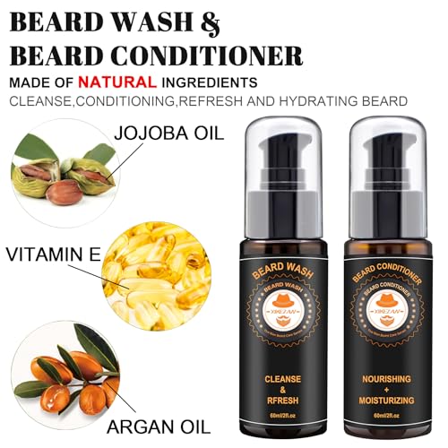 【El más Completo Kit Barba Hombre】Nuestro especializado kit cuidado barba hombre está diseñado para ayudarte a mantener una barba suave, brillante y bien cuidada. Este kit para barba hombre está empaquetado en una CAJA DE REGALO de lujo con Champu Barba,Acondicionador,Aceite,Balsamo,Rodillo,Afeitadora,Cepillo,Peine,Tijeras,bolsa de viaje y libro electrónico para la barba.Perfecto para todo tipo de barbas o bigotes, largo, corto, grueso, fino, grueso, enredado!