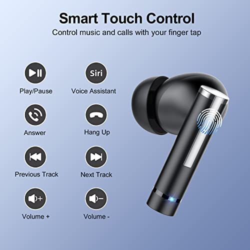 Control Táctil y Ajuste Cómodo : Durante el uso, puede tocar cualquiera de los auriculares para controlar el teléfono, como el interruptor de música, el control de volumen, las llamadas telefónicas, el asistente de voz, etc. Diseño ergonómico para un ajuste seguro y cómodo en cada oreja. Hay tres tamaños de auriculares disponibles y cada uno pesa sólo 4 g. Es más cómodo de llevar.