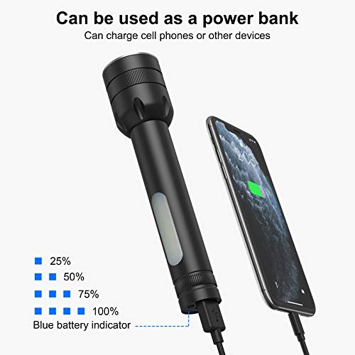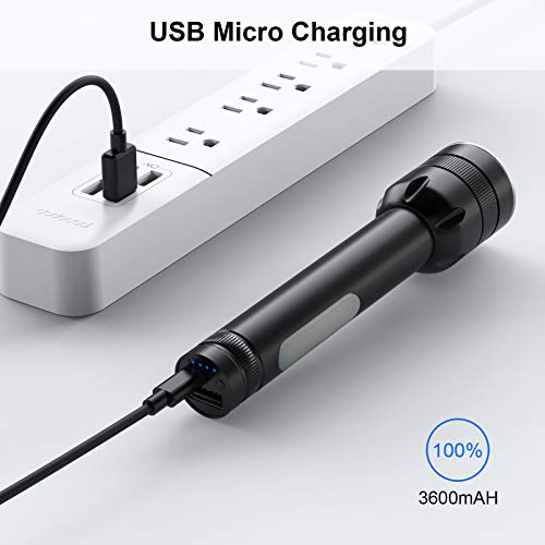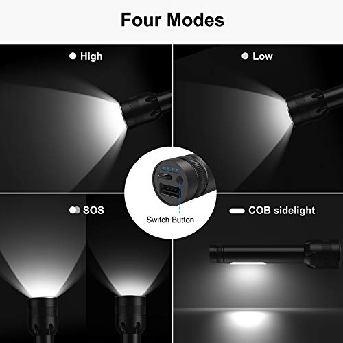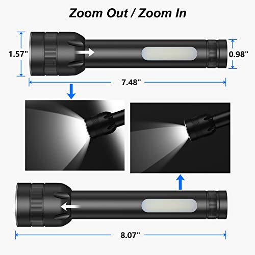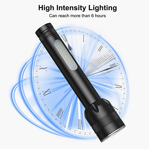 【Modo de iluminación】: la linterna tiene 4 modos superbrillantes, incluido el modo COB de luz intensa / luz tenue / flash / luz lateral. Presione el botón, el tiempo de uso de la luz fuerte es de más de 4 horas, el tiempo de uso de poca luz es de 8 horas, el tiempo de uso del flash es de 10 horas y el tiempo de uso de la luz lateral COB es de 12 horas.