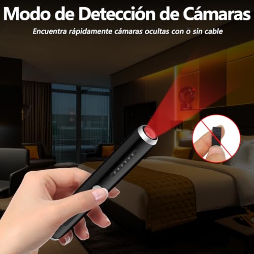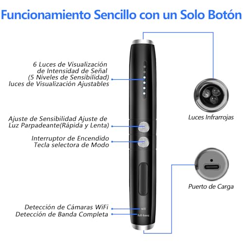 DURADERO Y LIGER – El detector de cámara oculta sólo 30g y con el diseño de la pluma, fácil de llevar. Batería recargable incorporada, tiempo de trabajo continuo de unas 25 horas, en espera hasta 25 días, y sin necesidad de cambiar la batería. Le permite localizar la fuente de la señal con mayor precisión para cualquier lugar y en cualquier momento