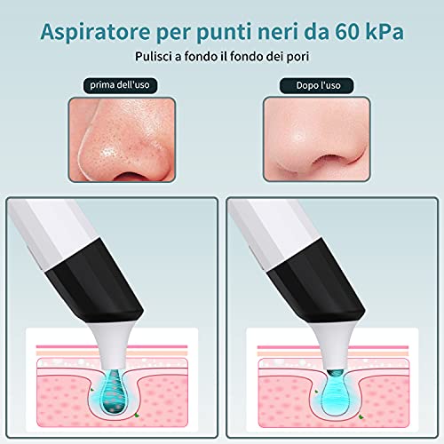 【Fuerte succión】máximo hasta 60kp, para una limpieza más profunda de su piel. Limpia eficazmente los puntos negros, la grasa y el acné de los poros obstruidos. También aumenta la circulación sanguínea y la elasticidad de la piel, tensa la piel y suaviza las líneas finas. Le ayudará a recuperar su mejor estado de piel.