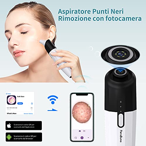 PeroBuno Limpiador de Poros con Camara y 4 Cabezales para Espinillas puntos negros y Acné Kit para la limpieza de puntos…
