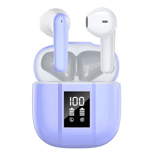 Indicadores LED duales en tiempo real y reproducción de 48 horas: El indicador LED digital muestra el estado de carga del estuche de carga y los auriculares inalámbricos deportivos. Al cargar el estuche, la luz LED comenzará a parpadear de 1 a 100. Los auriculares inalambricos internos funcionan durante 8 horas con una sola carga, con el estuche de carga incluso 40 horas adicionales. Equipado con cable tipo C, te ofrece una carga más rápida y estable.