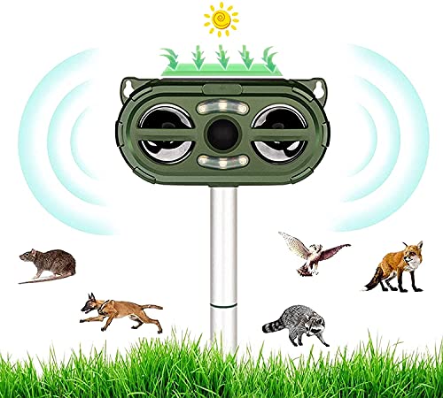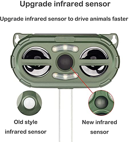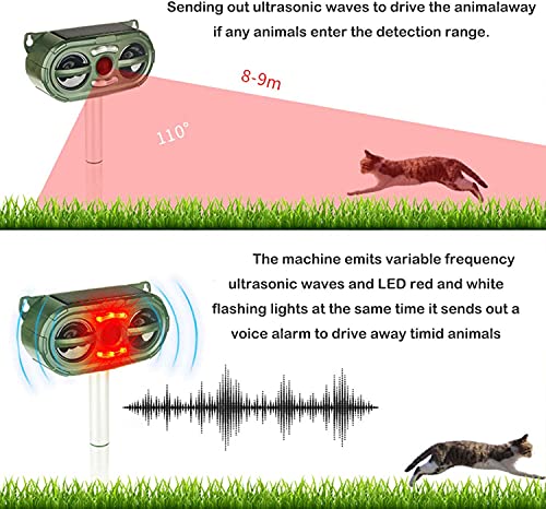 ✔ Ultrasonido + LED parpadeante fuerte + alarma sonora: Hay 6 luces LED fuertes en los ojos del búho. En cuanto a su boca, es un transmisor de ultrasonidos. Cuando el repelente externo detecta movimiento y calor corporal, emite una mezcla de ultrasonidos de varias ondas, fuertes luces intermitentes y una alarma sonora para asustar a los animales. No hay peligro para humanos o animales.