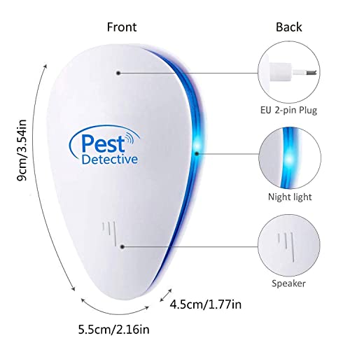 🍀 【FÁCIL DE USAR】: simplemente conecte el repelente ultrasónico de mosquitos en el enchufe a 30-150 cm del piso y asegúrese de que no haya barreras como cortinas o casilleros que cubran el repelente. ¡La mayoría de los clientes pueden ver resultados dentro de 3-4 semanas! Entonces podremos despedirnos de los parásitos y los ratones.