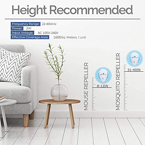 🍀 【FÁCIL DE USAR】: simplemente conecte el repelente ultrasónico de mosquitos en el enchufe a 30-150 cm del piso y asegúrese de que no haya barreras como cortinas o casilleros que cubran el repelente. ¡La mayoría de los clientes pueden ver resultados dentro de 3-4 semanas! Entonces podremos despedirnos de los parásitos y los ratones.