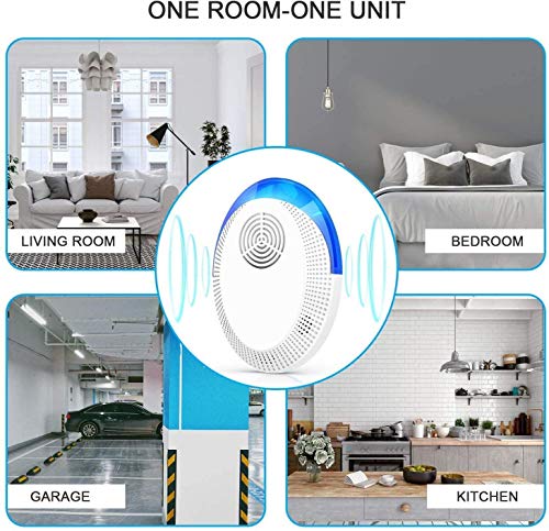 Amplia área de cobertura- Epelente Ultrasónico Mosquitos produce efectos en un área de hasta 80 ~ 120 metros cuadrados, es ideal para dormitorios, baños, garajes, cocinas, oficinas, almacenes. Repelente adopte la tecnología de imitación para transmitir ondas de sonido, pero el ultrasonido no penetra las paredes, sugerimos utilizar al menos 1 dispositivo para cada habitación.