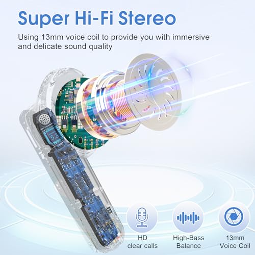 Calidad de sonido HIFI y llamadas claras:Auriculares bluetooth equipados con altavoces dinámicos de 13 mm y un micrófono HD integrado, los auriculares reducen el ruido al menos 40 dB, proporcionando bajos potentes y estéreo claro. Disfruta de una calidad de sonido cristalina y una experiencia de sonido dinámica, incluso en calles concurridas, puedes tener conversaciones agradables.