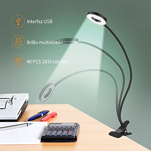 SUNNEST LED- Luz Lectura Lámpara de Escritorio con Panel Táctil Luz de Libro Recargable y 3 Niveles de Brillo 48 LEDS…