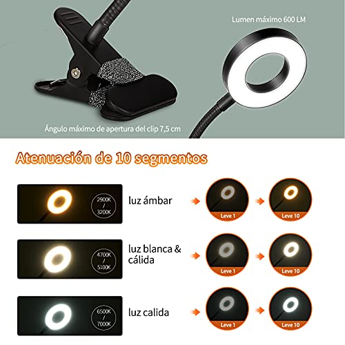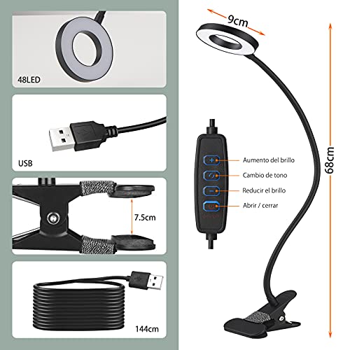 El cuello ergonómico proporciona al flexo Pinza una rotación arbitraria de 360 °. 48 LEDS, Hecho de gel de sílice, una sensación súper cómoda, y el tamaño y el ángulo se pueden ajustar a la discreción.