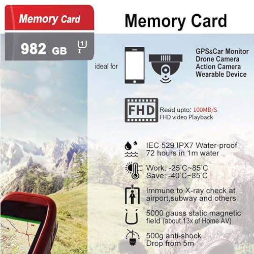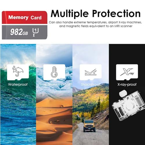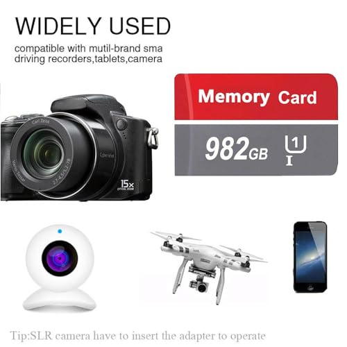 ★【Micro SD 982GB】Tiene una gran capacidad de 982GB para maximizar la liberación de espacio de su teléfono móvil. Puede almacenar todas sus fotos de viajes, películas y archivos de trabajo en él. Es fácil satisfacer sus necesidades de almacenamiento.